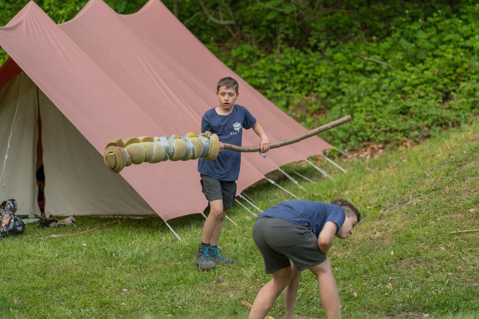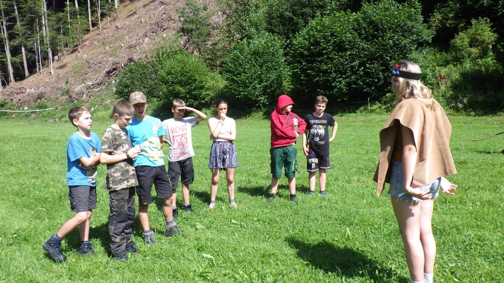 In der ersten Ferienwoche reisten wir zu den Mayas, um sie dabei zu unterstützen, die Spanier zurückzuschlagen. Zeitgleich hatten die beiden Lagergruppen – Vertreter der Städte Tulum und Tayasal – das Ziel, die stärkere und angesehenere Stadt zu werden, damit diese von der Maya-Königin Luma zur neuen Hauptstadt ernannt wird. So wurden Tempel, Öfen, Gegenstände für den Fischfang – wie Reusen und Harpunen – und Hilfsmittel für den Wassertransport erbaut. Eines Nachts wurden der Astronomin Venus ihre geklauten Notizen wiederbeschafft und einander Sterne geraubt. Zudem mussten die Gruppen in einem Geländespiel ihre Maisfelder gegen hungrige Tiere verteidigen oder in einer Olympiade gegeneinander antreten.